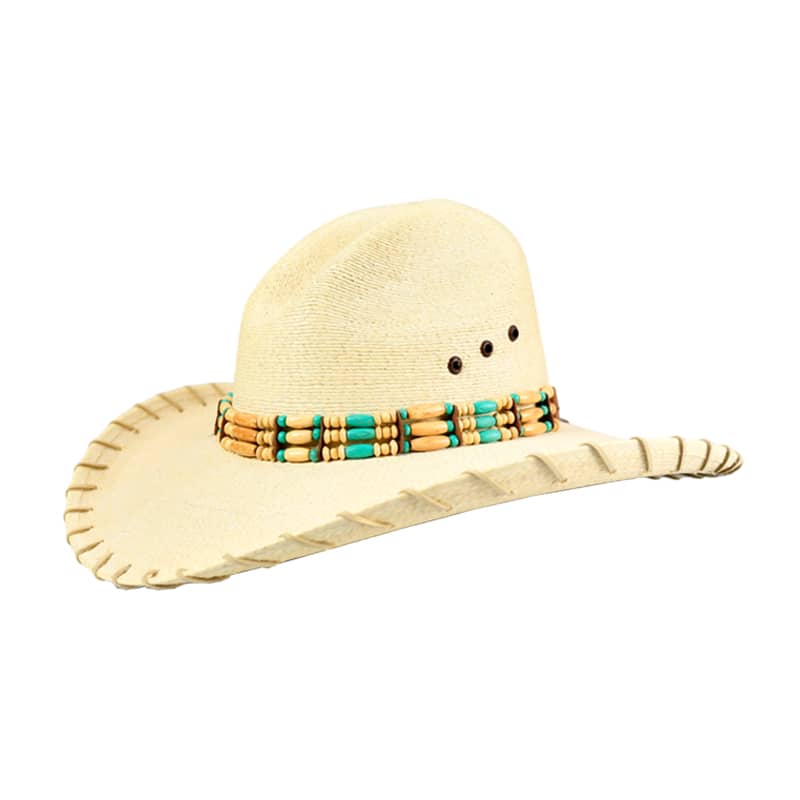Fine white soft palm, burnt, bronco style w/beige stitching on edge & # 3 wide beaded hb