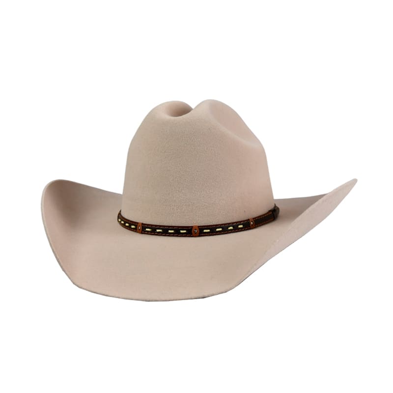 6x Beige Wool Felt, 4" brim, w/2 tone brown leather hb & looping cord