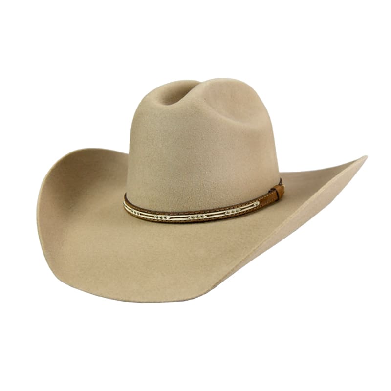 6x Sand Wool Felt, 4" brim, w/dark brown & white leather hb & silver conchos
