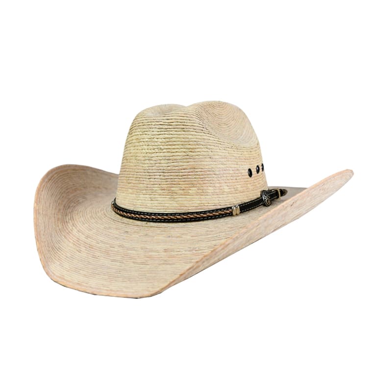 Cattleman Palm, blk leather hb w/braided br & beige immitation horse hair & oval conchos